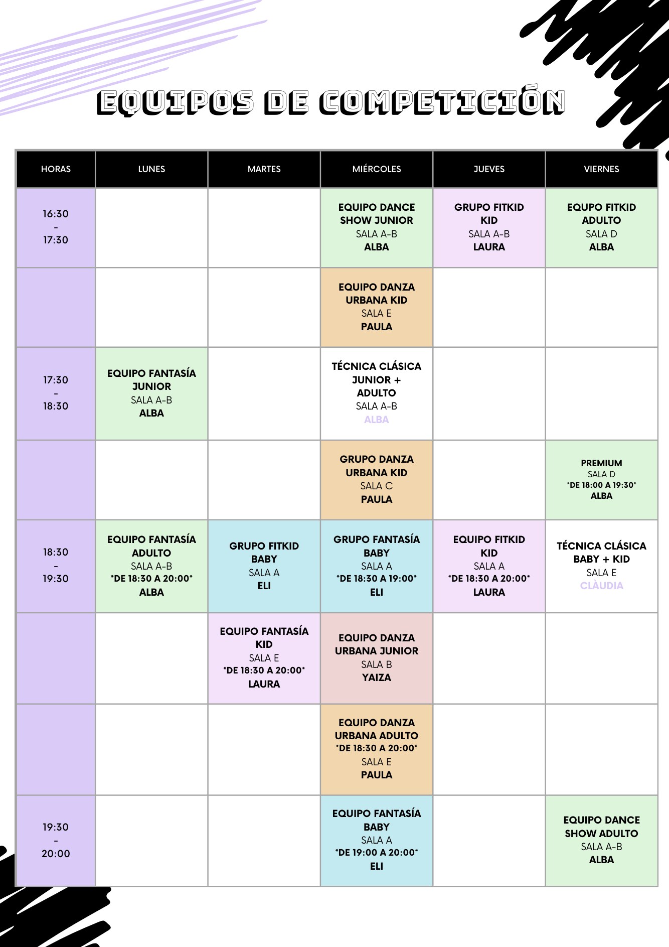- En este horario podéis encontrar todos los equipos de competición que se harán en la próxima temporada 2024/2025.